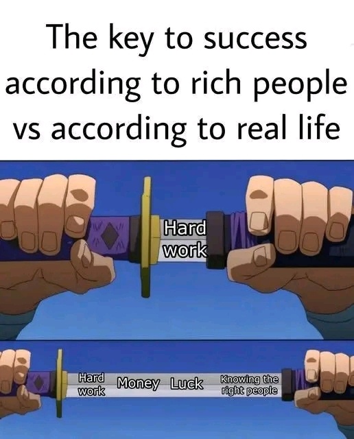 Hard work money luck knowing the right people
