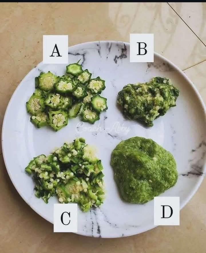Over to you ladies in the hous, how do you like you okra, A,B,C or D.